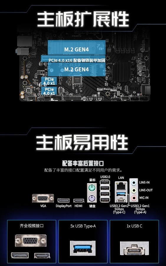 适用于MSI 微星PRO B760M-P DDR4 支持CPU 12代 13代