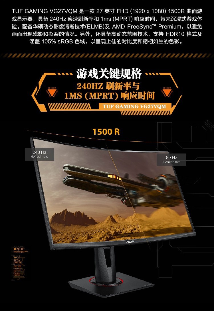新品TUF VG27AQ3A 27英寸电竞游戏2K电脑显示器Fast IPS超频180Hz