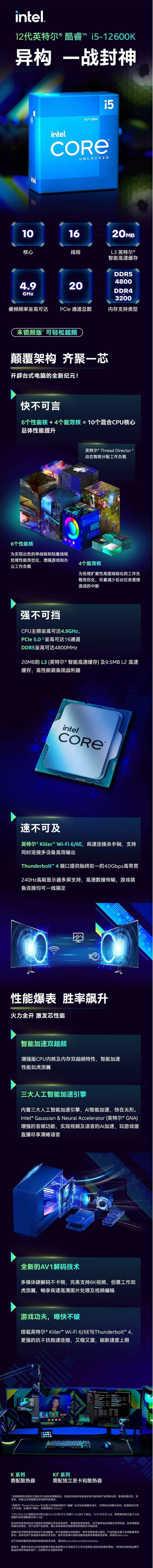 12代酷睿I5 12600KF12600K台式机CPU处理器LGA1700