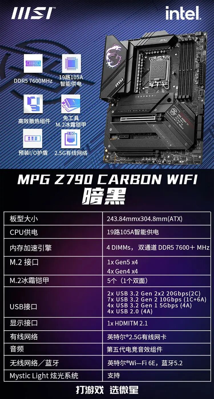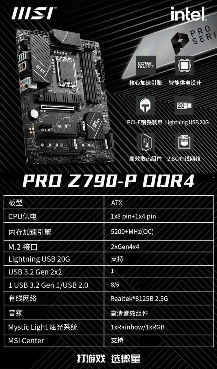 适用于MSI 微星PRO B760M-P DDR4 支持CPU 12代 13代