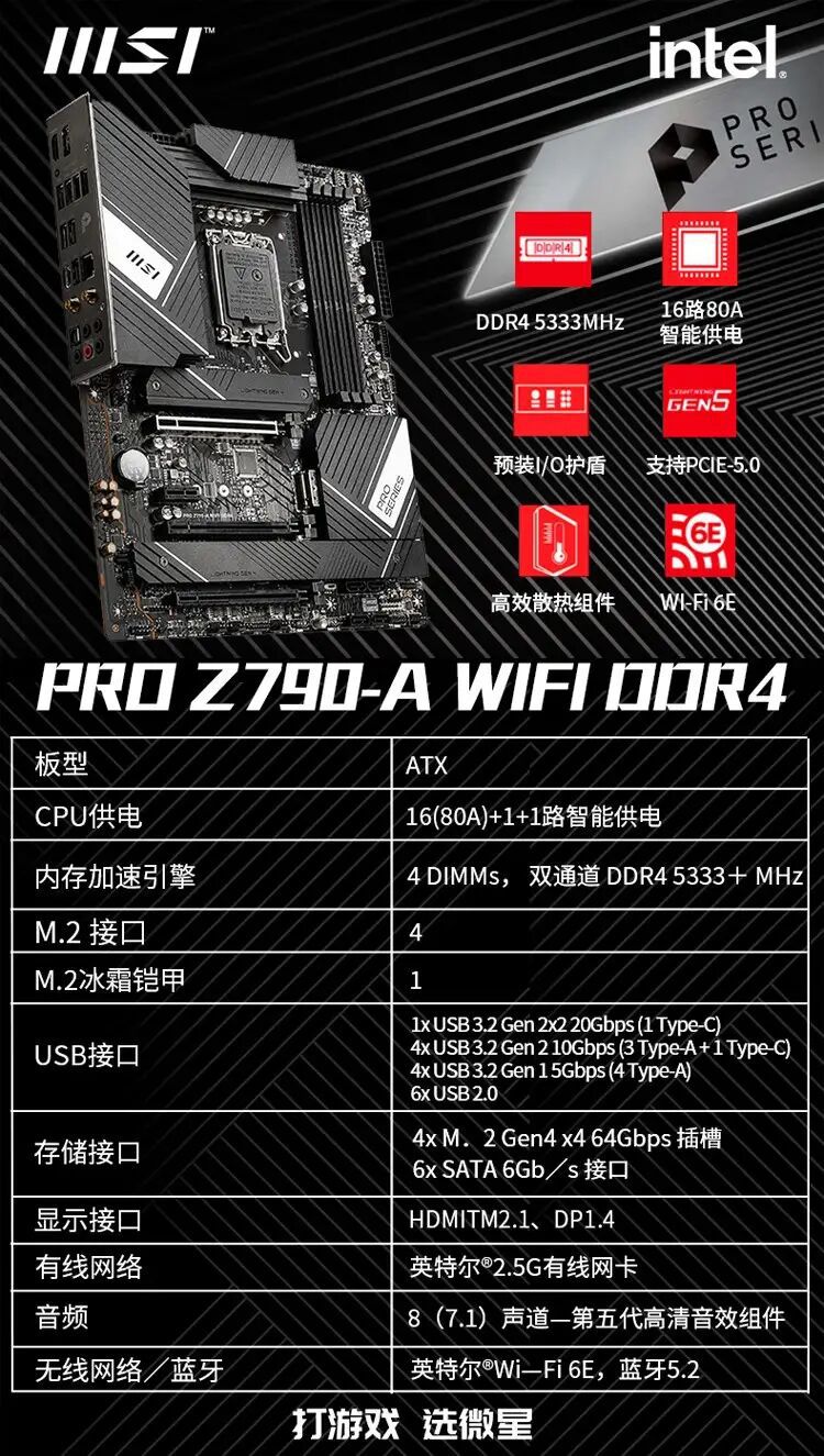 微星PRO Z790-P WIFI DDR5台式机电脑主板适用13600KF/ 13700KF