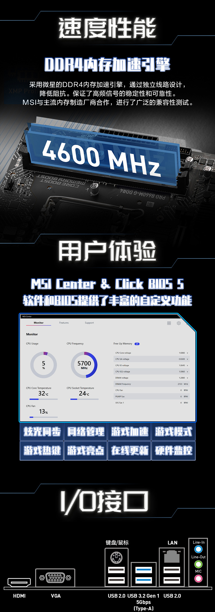 适用于MSI 微星PRO B760M-P DDR4 支持CPU 12代 13代