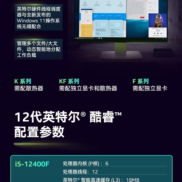 适用于官方正品INTEL英特尔 i5 12400F 原盒