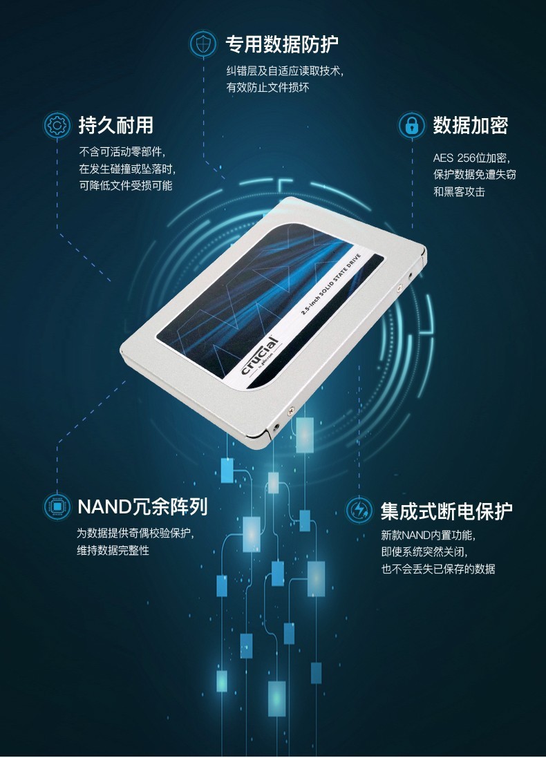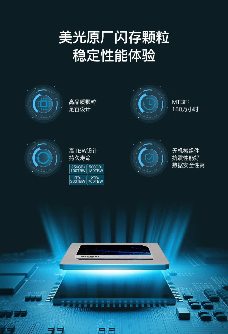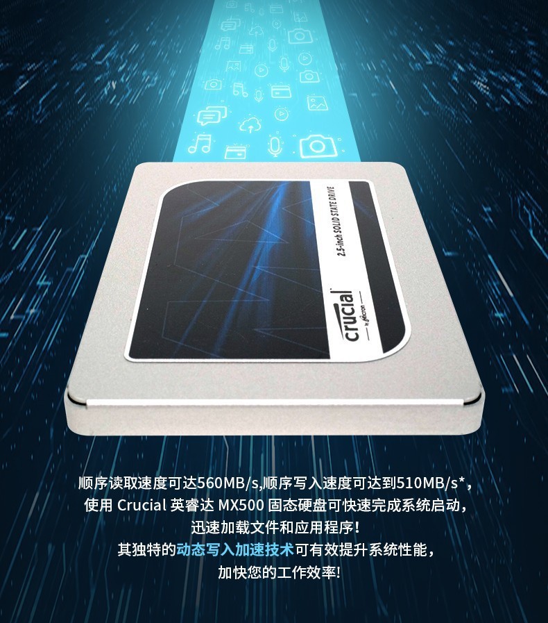 适用于英睿达Crucial美光MX500 250G500G1TB2TB SSD固态硬盘