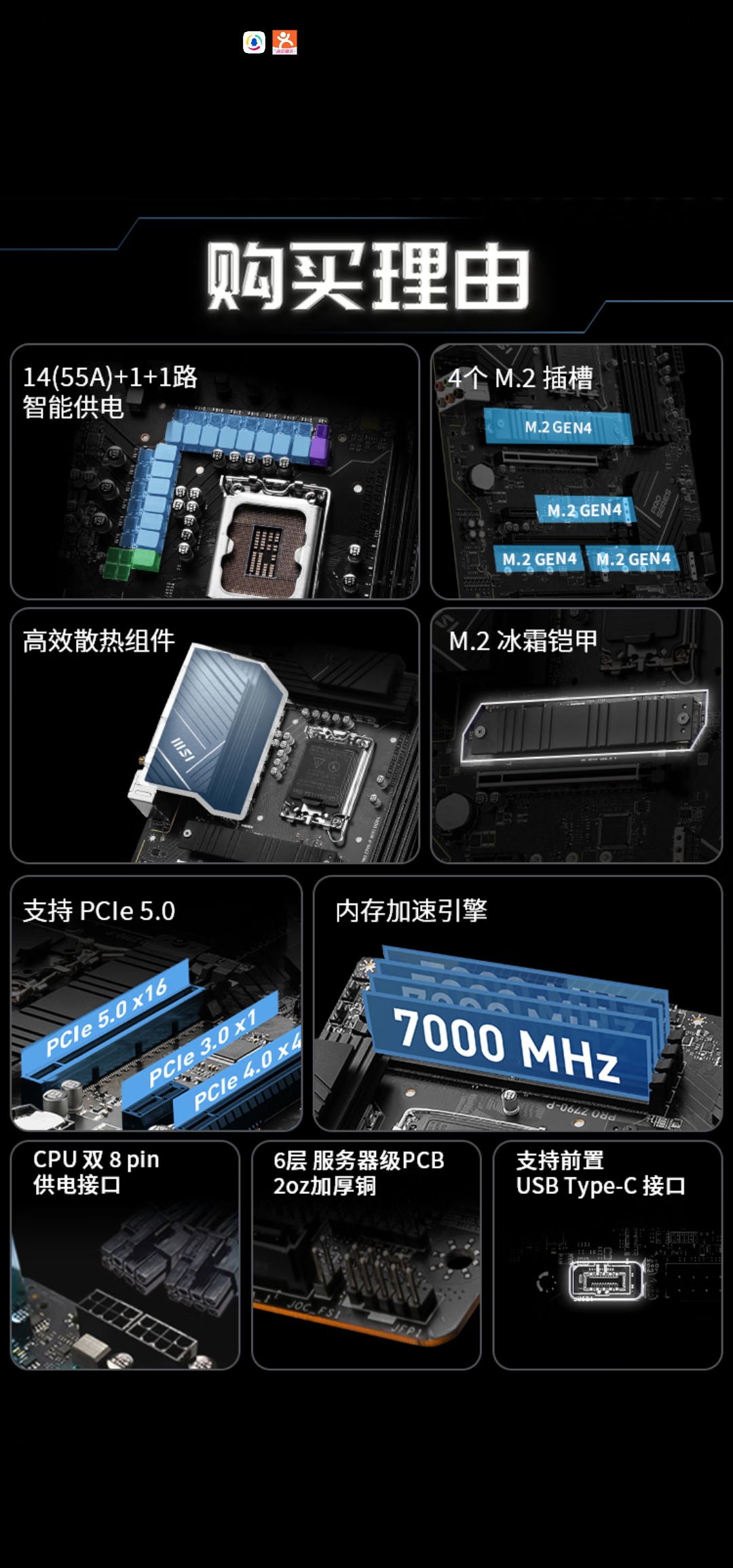 适用于MSI 微星PRO B760M-P DDR4 支持CPU 12代 13代