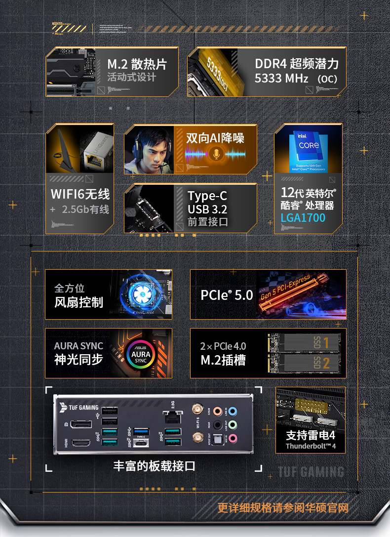 TUF GAMING B550M-PLUS WIFI II 重炮手主板支持CPU 5600G5 700X