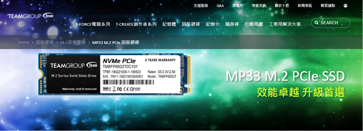 十铨 MP33 M.2 PCIe 固態硬碟 2TB 1TB 512GB 256GB 128GB