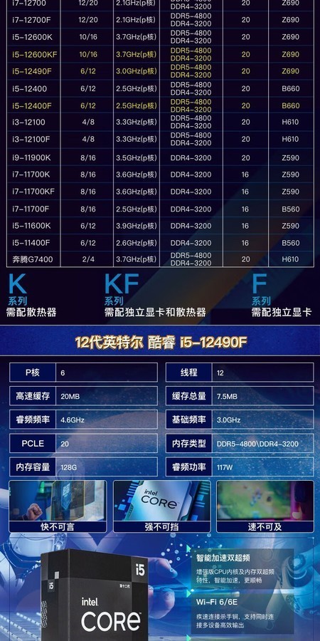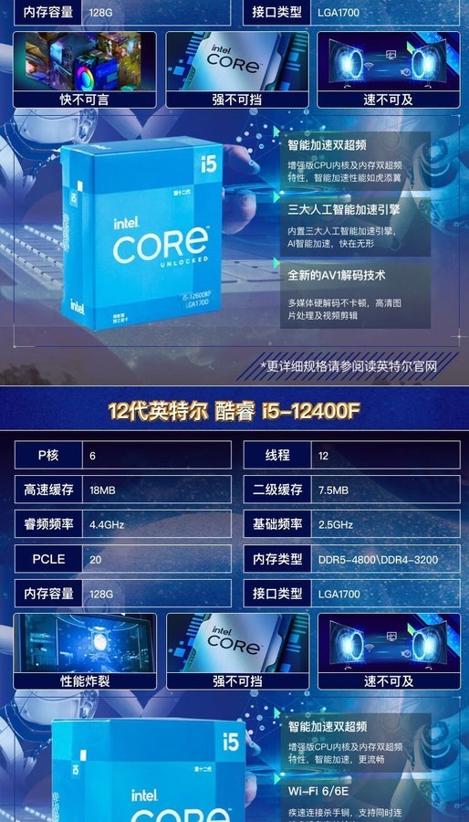 全新I5 12400散片CPU电脑处理器6核12线程支持主板H610B660适用