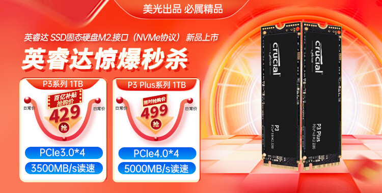 英睿达 P3 PLUS 系列 M2 2280 NVME 500G 1TB 2TB 4TB