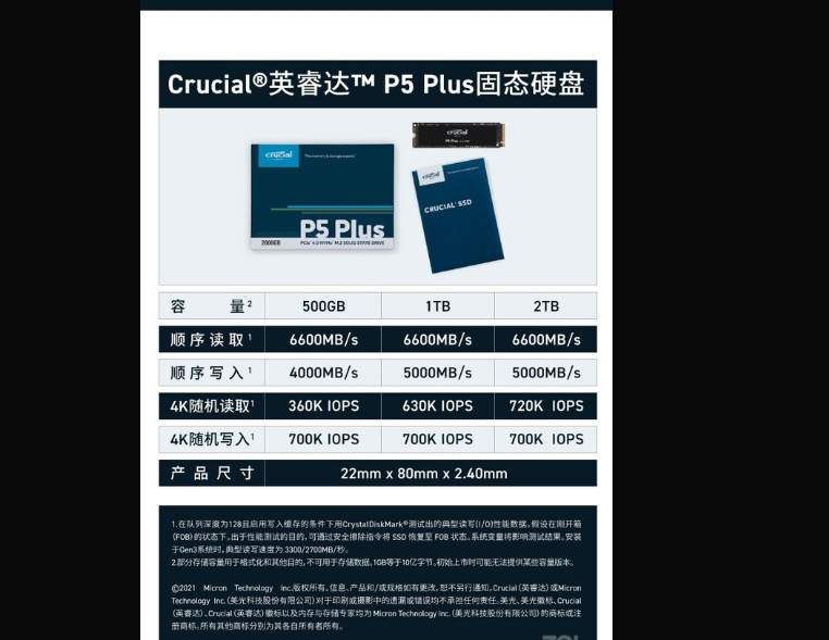 英睿达P5系列 Plus M.2 1TB 2TB