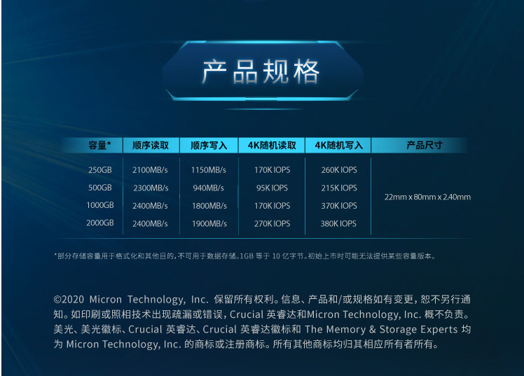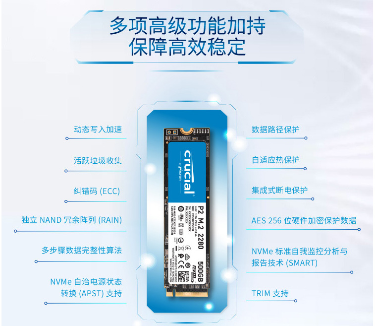 适用于英睿达Crucial美光MX500 250G500G1TB2TB SSD固态硬盘