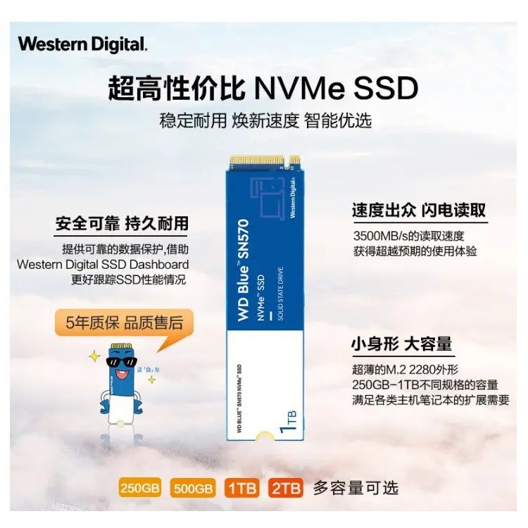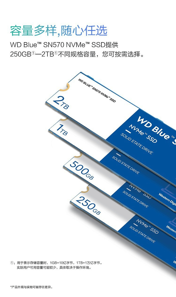 WD蓝盘SN570 500G1TB2TB 固态硬盘M.2适用台式机笔记本电脑SSD