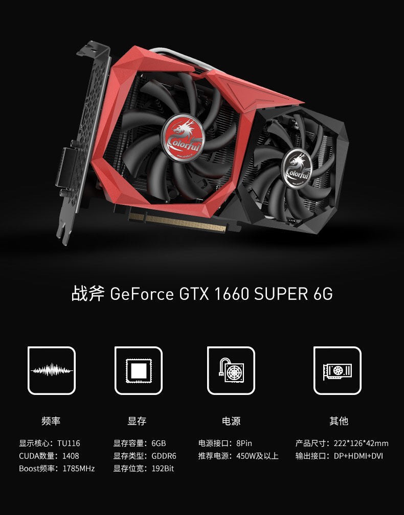 适用于七彩虹Colorful GeForce GTX1660 SUPER 战斧6G 电竞游戏