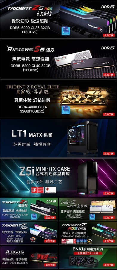 皇家戟芝奇G.SKILL32GB套装DDR4 36004000频率台式机RGB内存灯条