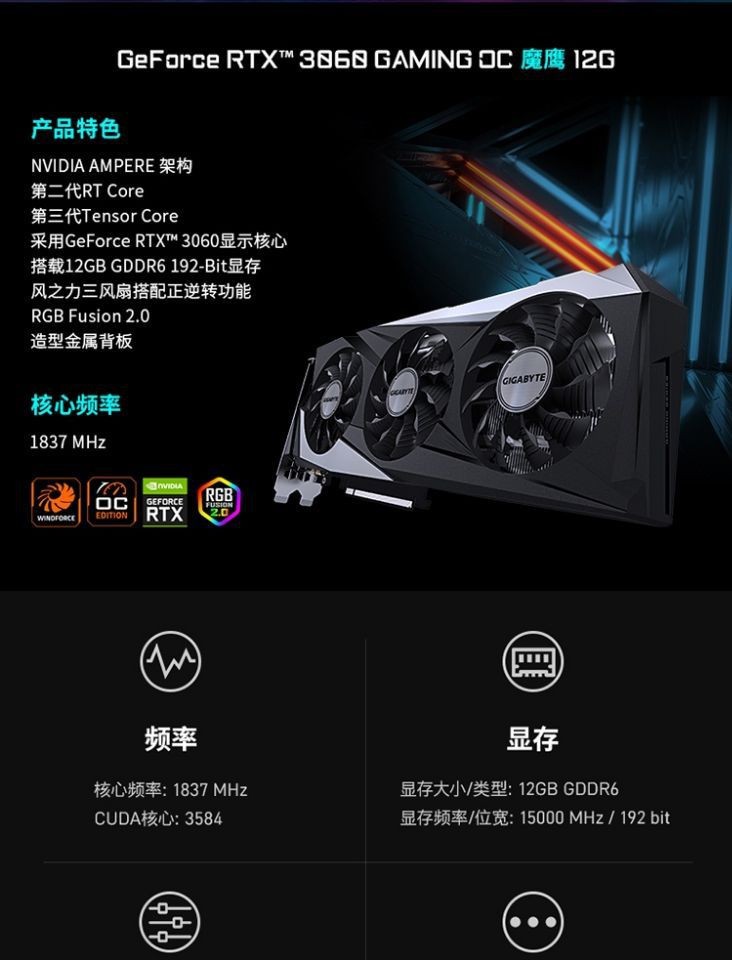 魔鹰LHR版GeForce RTX3060 GAMING OC 12G 2.0锁游戏显卡赛博朋克