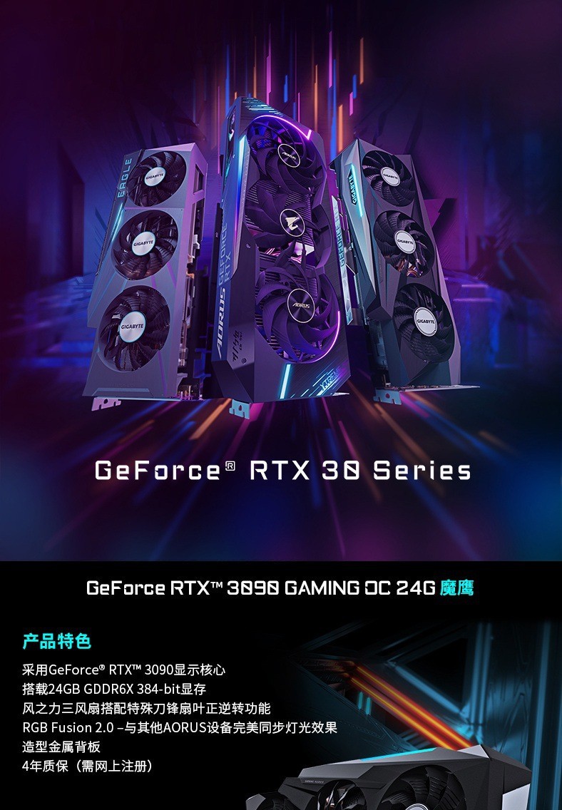 适用于技嘉RTX 3090 GAMING OC 24G 魔鹰 游戏显卡吃鸡COD赛博朋