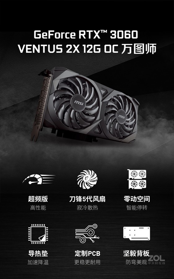 适用于MSI GeForce RTX 3060 VENTUS 2X 12G OC游戏显卡