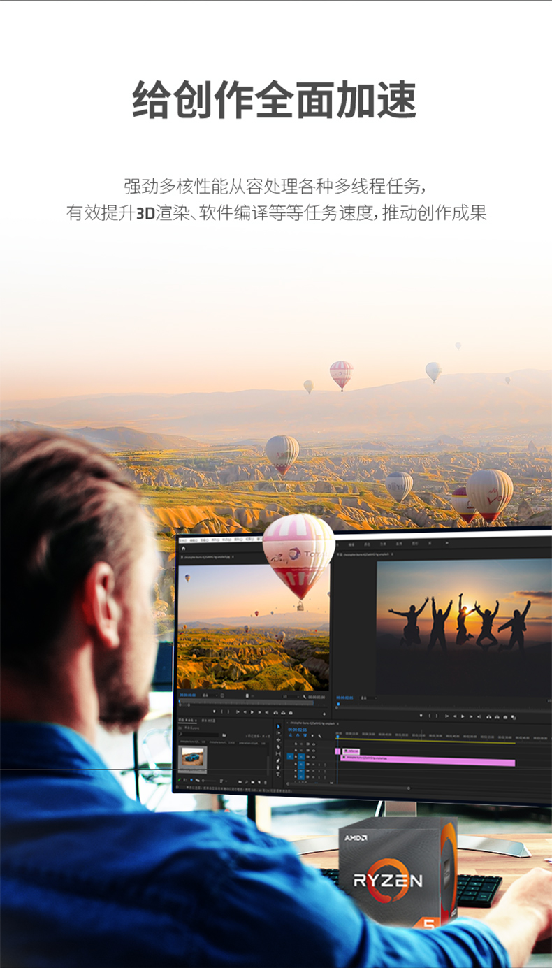 适用AMD锐龙R5 5600盒装CPU 6核12线程3.5GHz 65W适用B450M/B550M