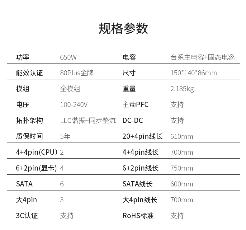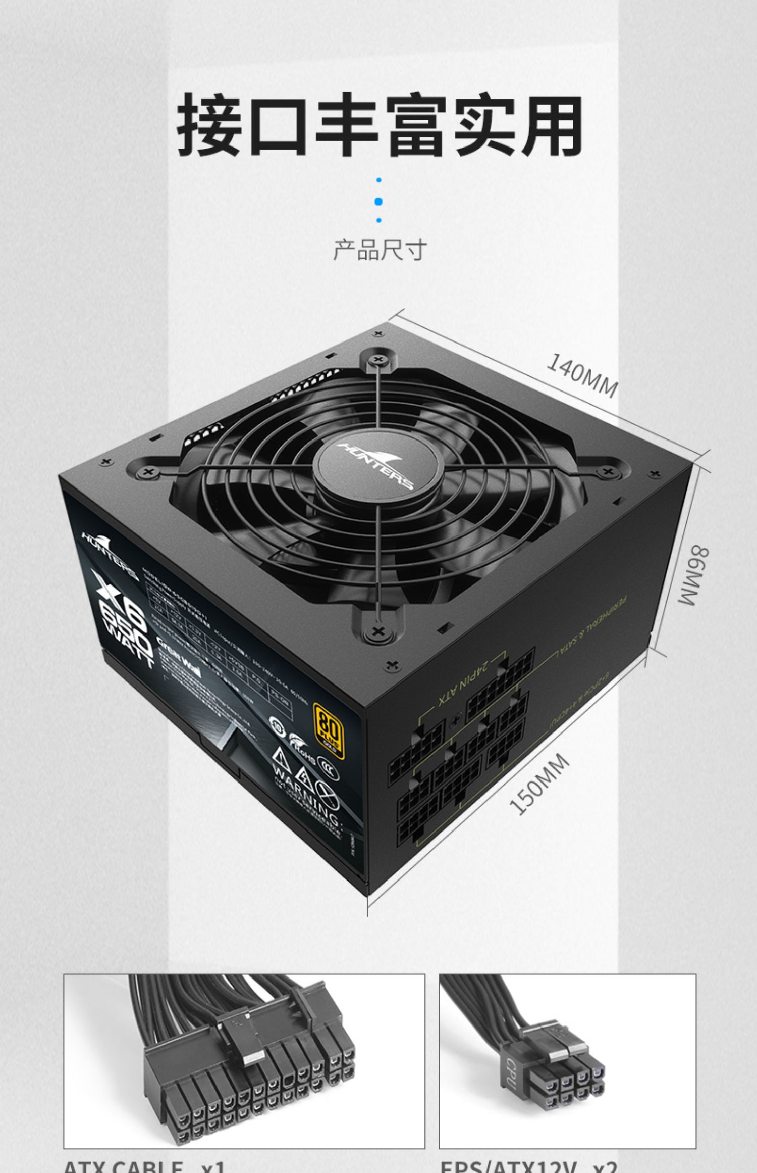适用长城X6金牌 额定650W全模电源宽幅单路12V静音台式机电源适用