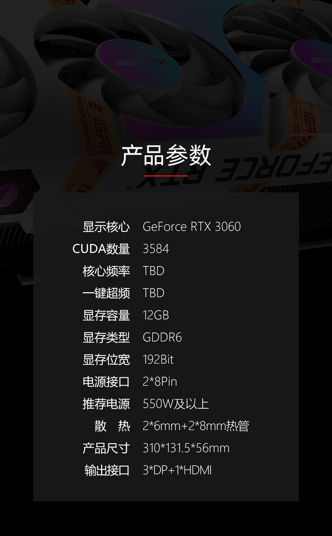 iGame GeForce RTX3060 Ti Ultra W OC 8G LHR锁电竞游戏设计显卡