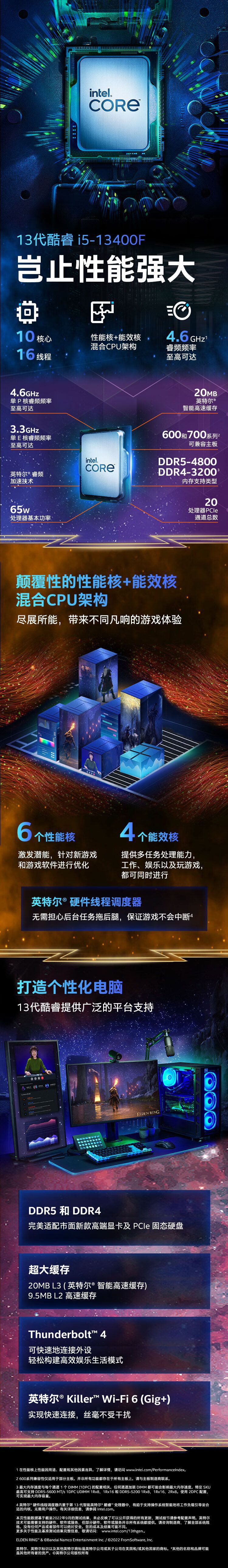 英特尔13代酷睿I5 13400F散片CPU 10核16线程适用主板B660B760
