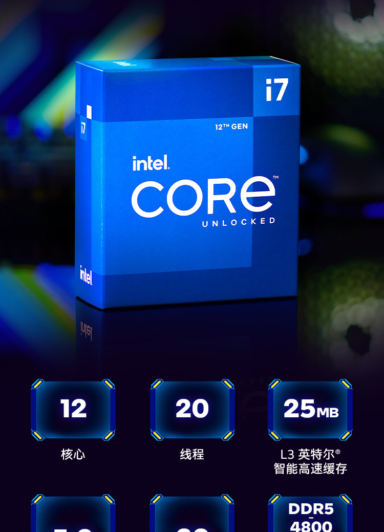 适用英特尔酷睿I7 12700KF盒装12代CPU处理器12核20线程适用Z690/