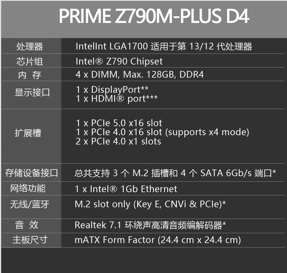 适用华硕PRIME Z790M-PLUS D4主板适用13代13600KF/13700KF/13900