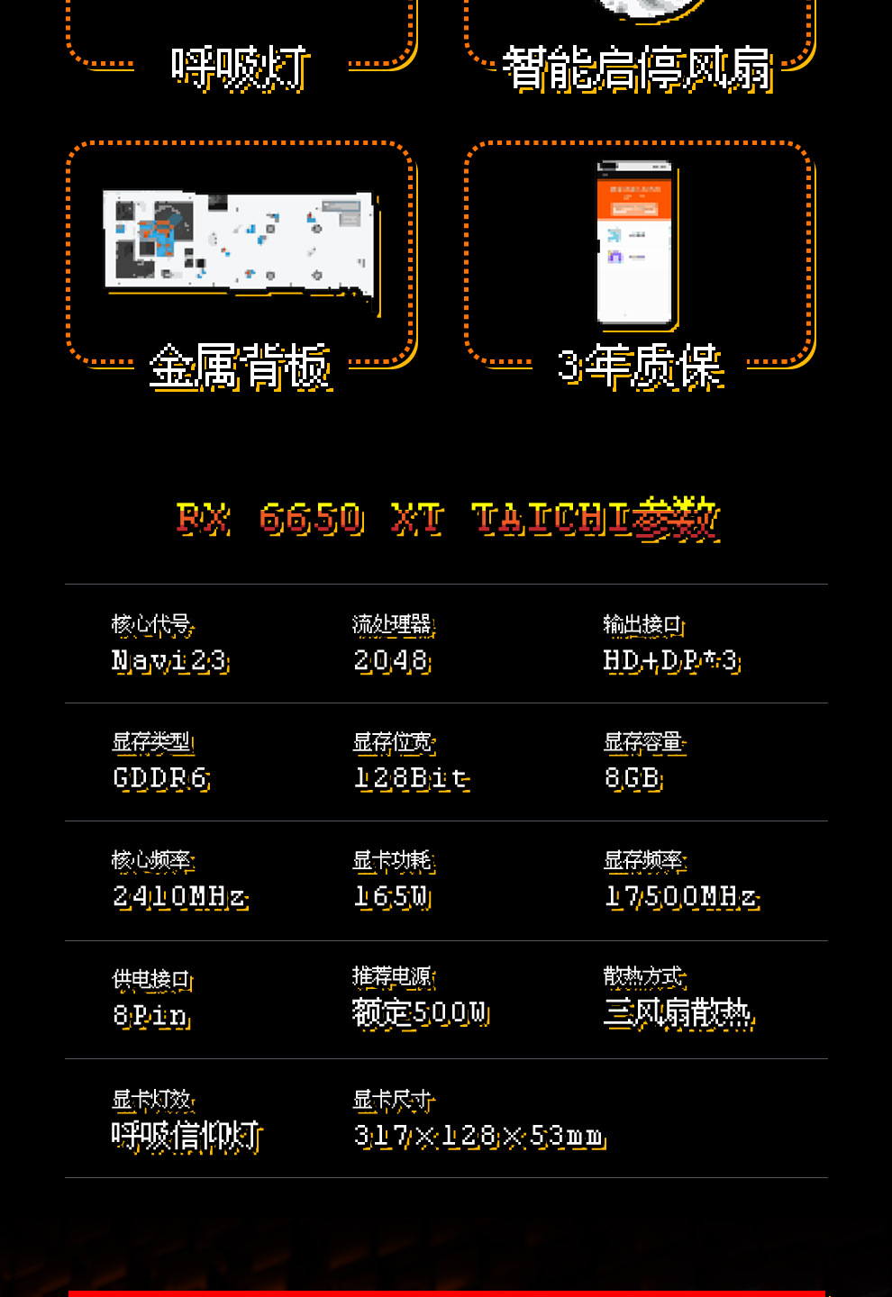 适用磐镭 (PELADN) AMD RX6650XT 8G显卡 台式机游戏图形设计智能