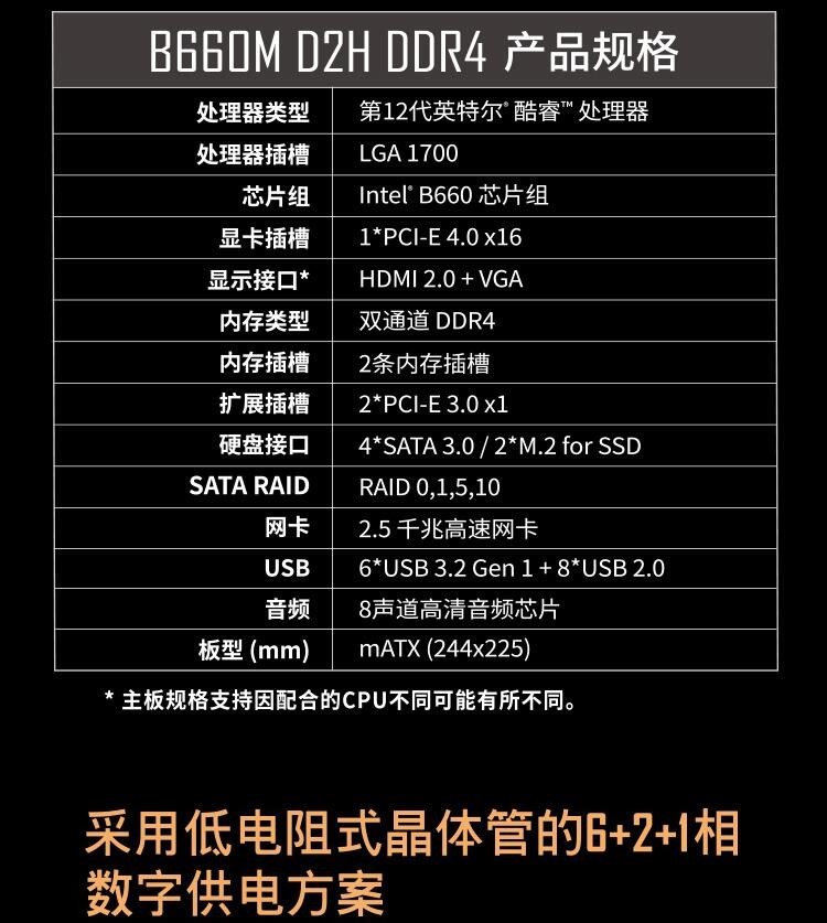 适用技嘉B660M D2H DDR4台式机电脑主板适用12400F/12490F/13600K