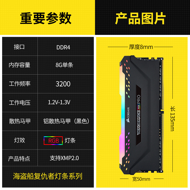 适用于海盗船 复仇者系列 16GB 3200 原装正品