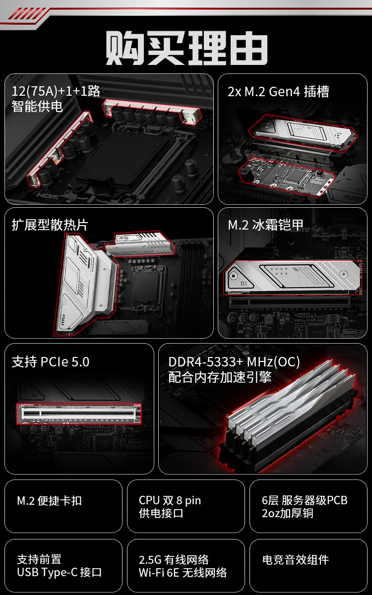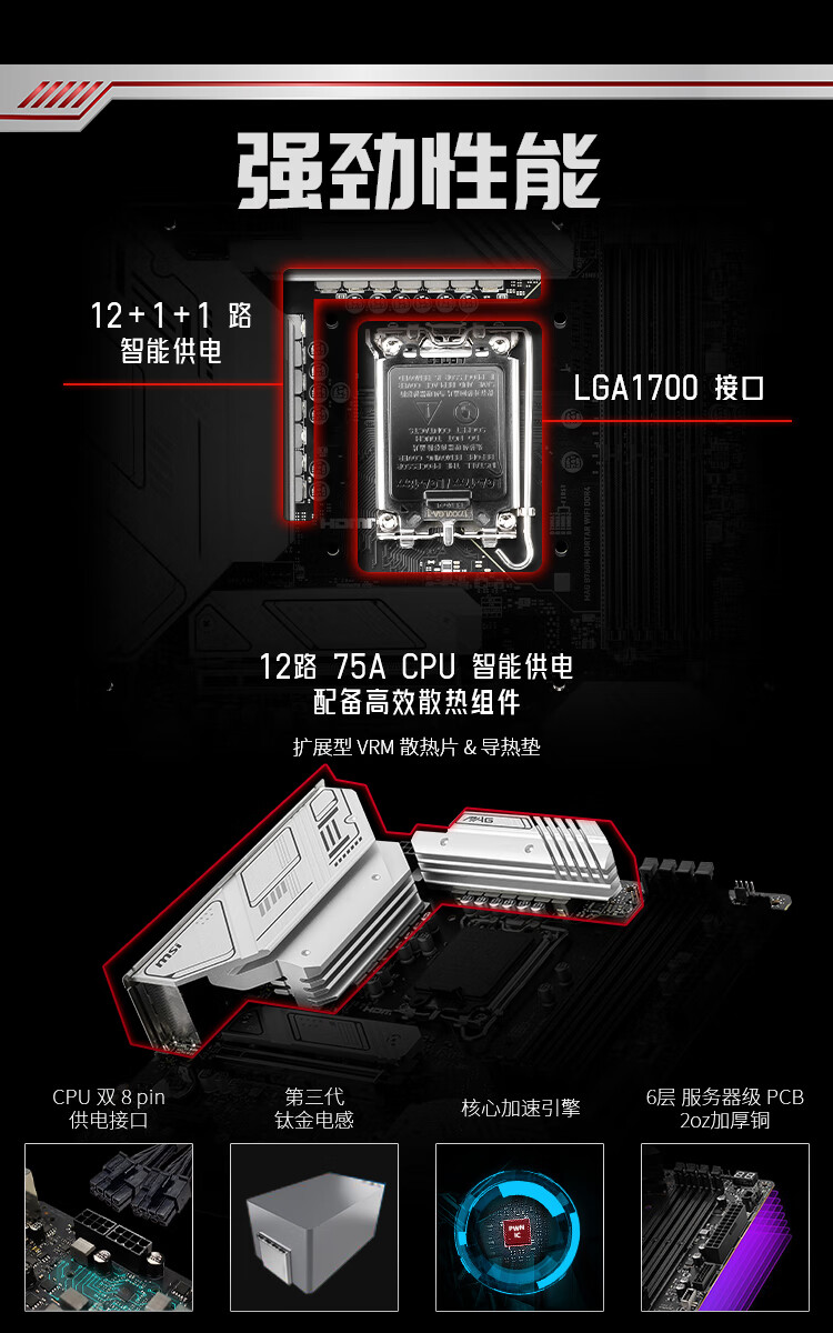 适用于MSI 微星PRO B760M-P DDR4 支持CPU 12代 13代