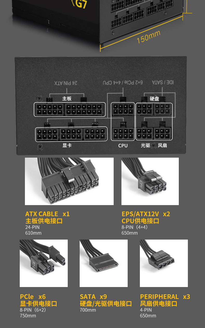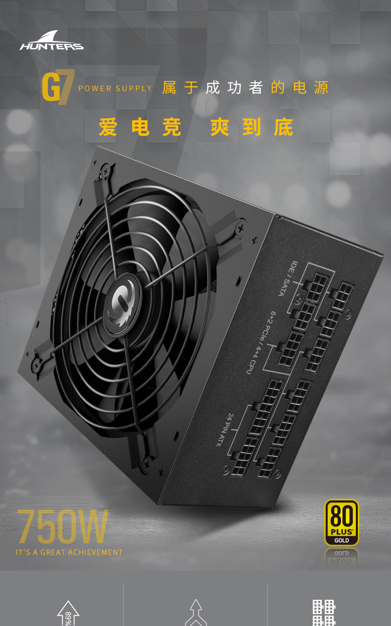 适用长城G7 额定电源750w金牌全模组台式机电脑主机游戏机箱适用