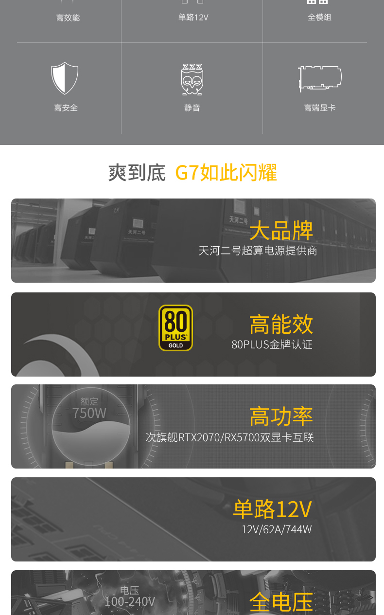 长城G7 额定电源750w金牌全模组台式机电脑主机游戏机箱适用