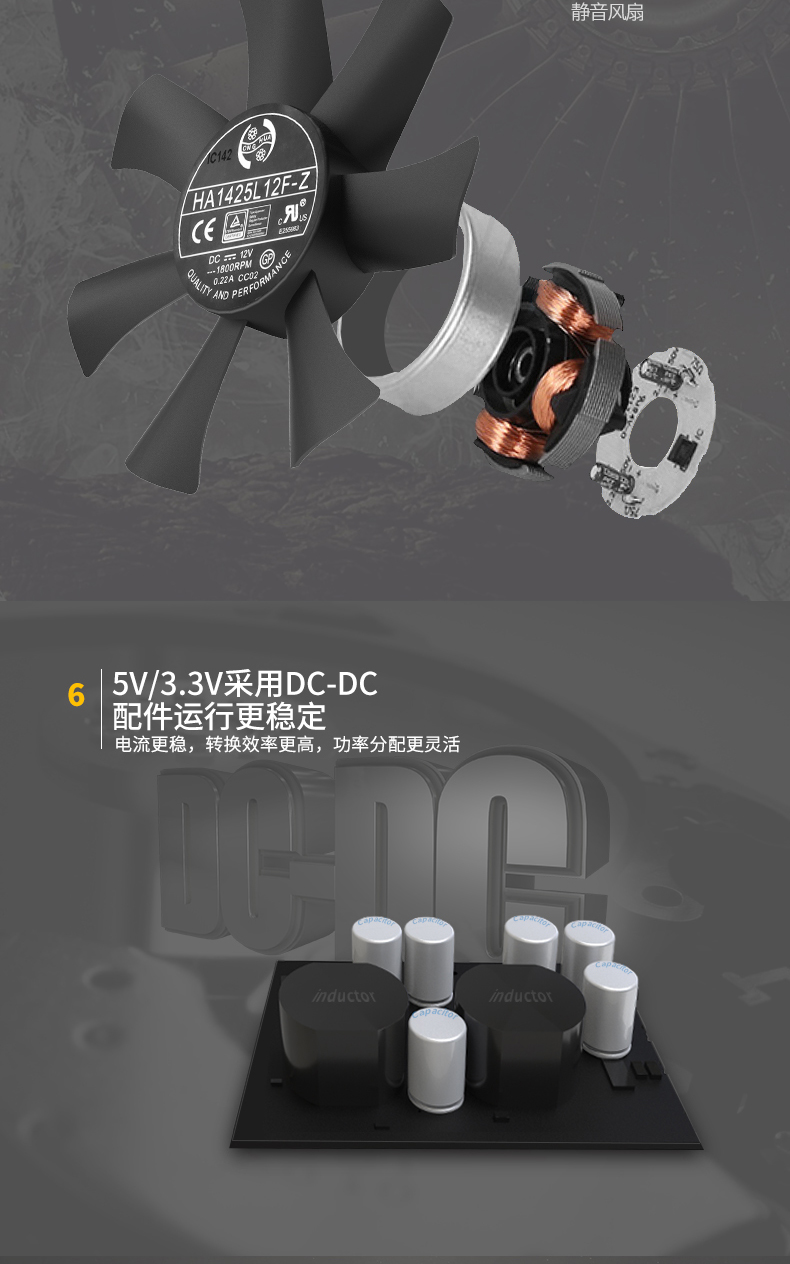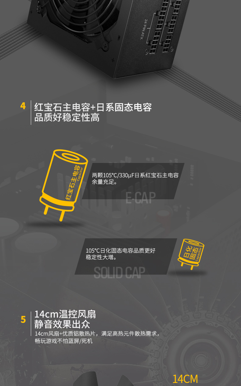 长城X6金牌 额定650W全模电源宽幅单路12V静音台式机电源适用