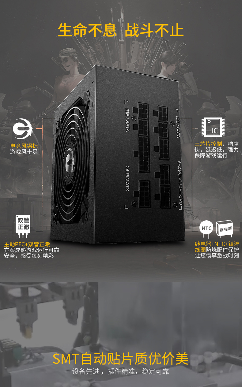 适用长城X6金牌 额定650W全模电源宽幅单路12V静音台式机电源适用
