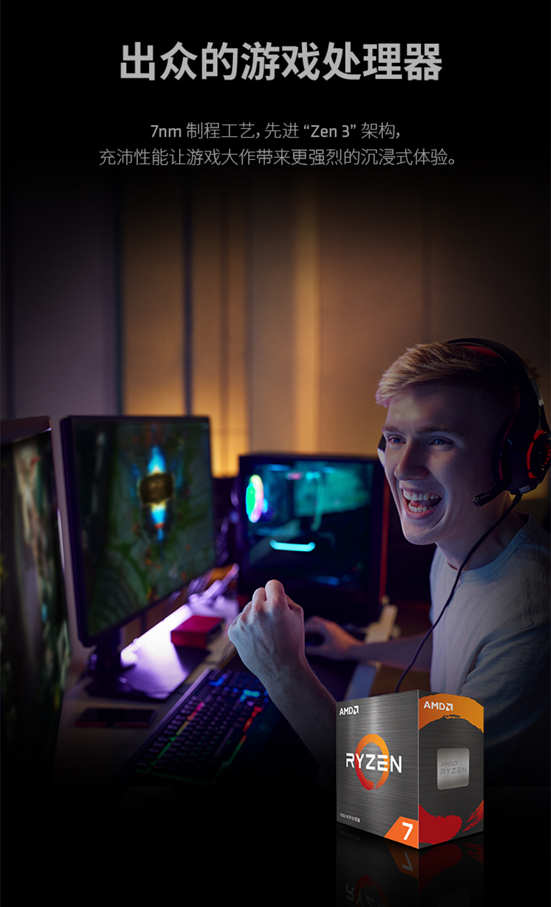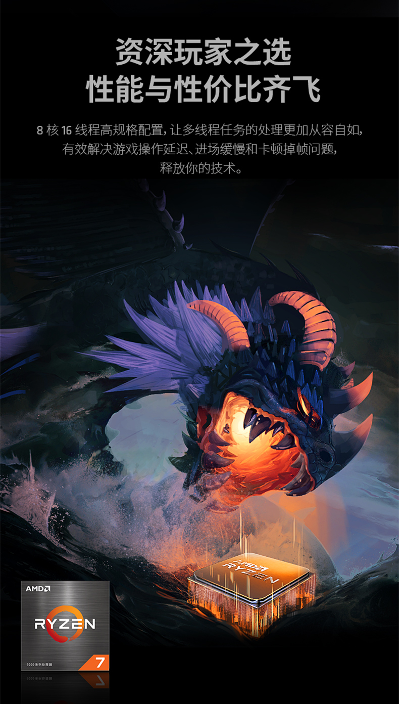 适用AMD锐龙R7 5700X盒装CPU 8核16线程3.4GHz 65W适用B450/B550