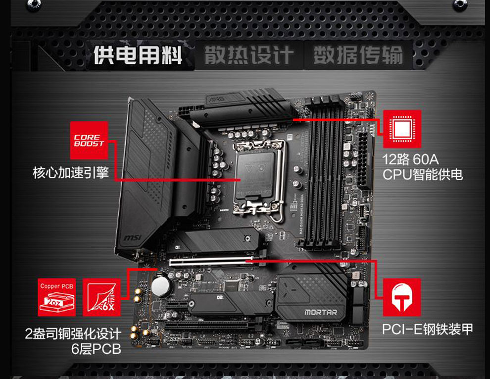 适用微星MAG B660M MORTAR DDR4 迫击炮主板适用12代酷睿处理器CP