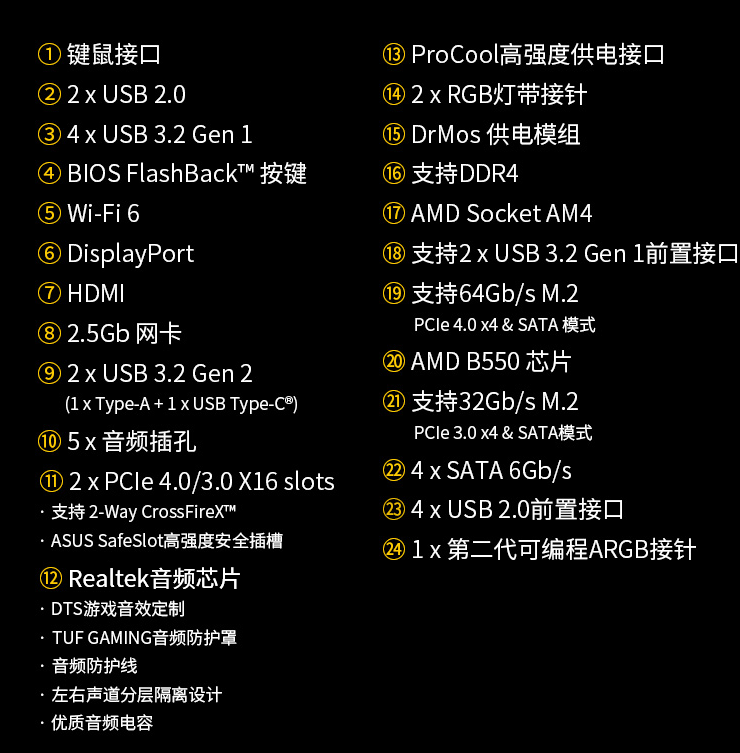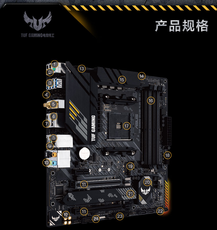 TUF GAMING B550M-PLUS WIFI II 重炮手主板支持CPU 5600G5 700X