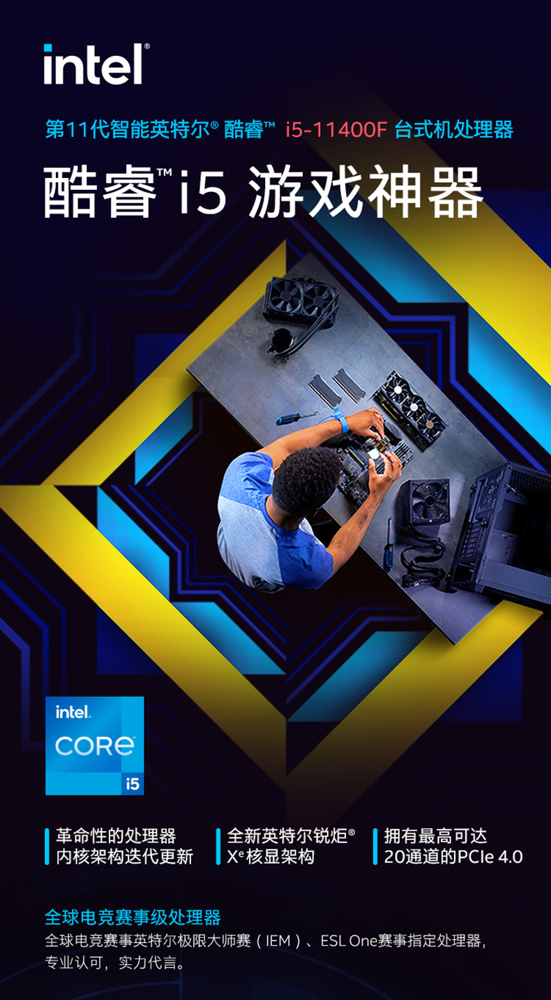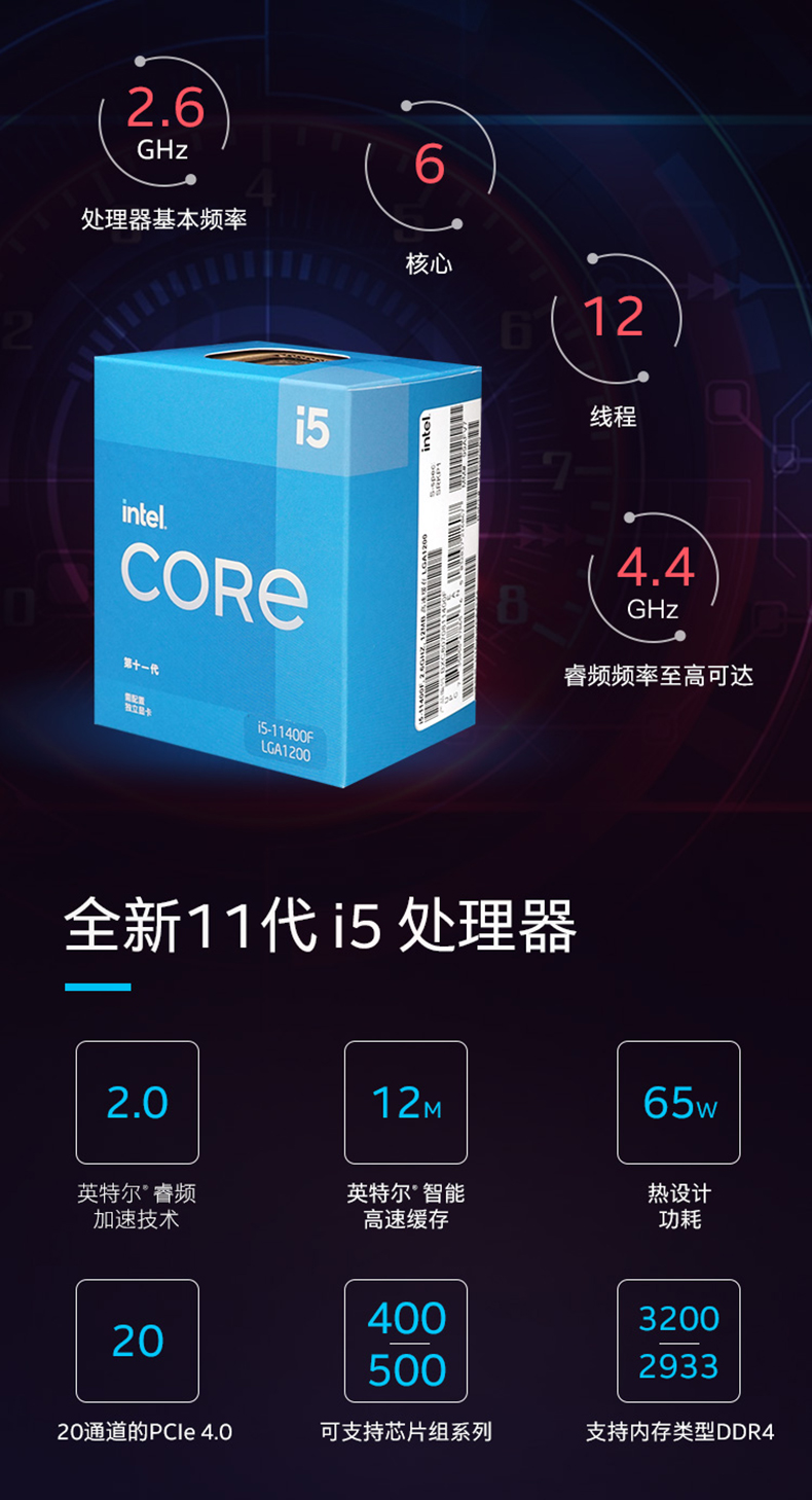 适用intel/英特尔11代酷睿i5-11400F盒装处理器6核12线程电脑CPU