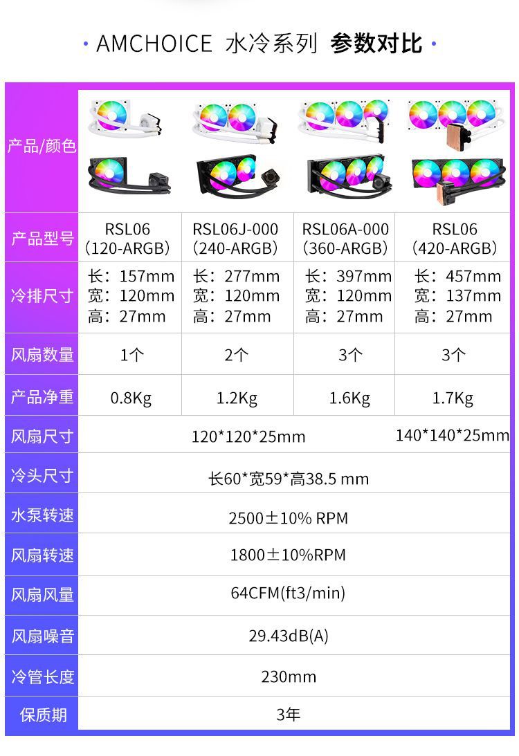 适用利民(Thermalright)AQUA ELITE WHITE 240 ARGB 一体式水冷散