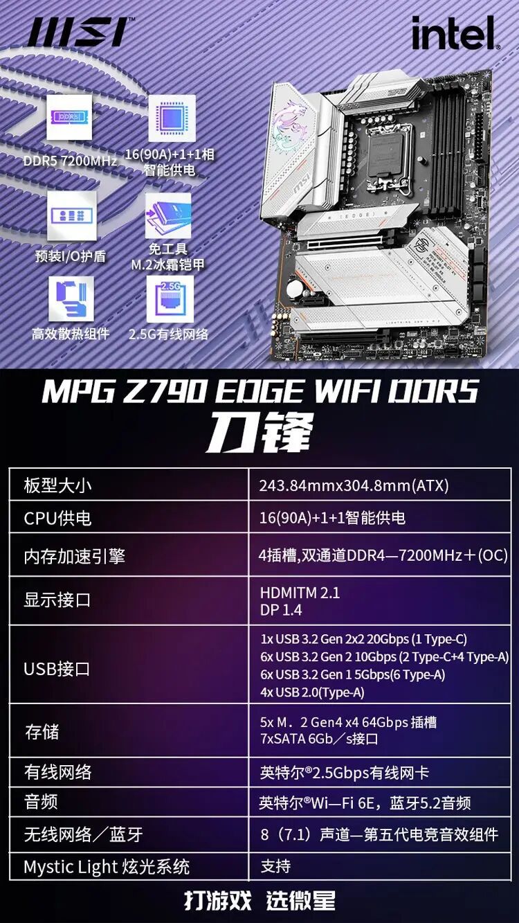 微星PRO Z790-P WIFI DDR5台式机电脑主板适用13600KF/ 13700KF