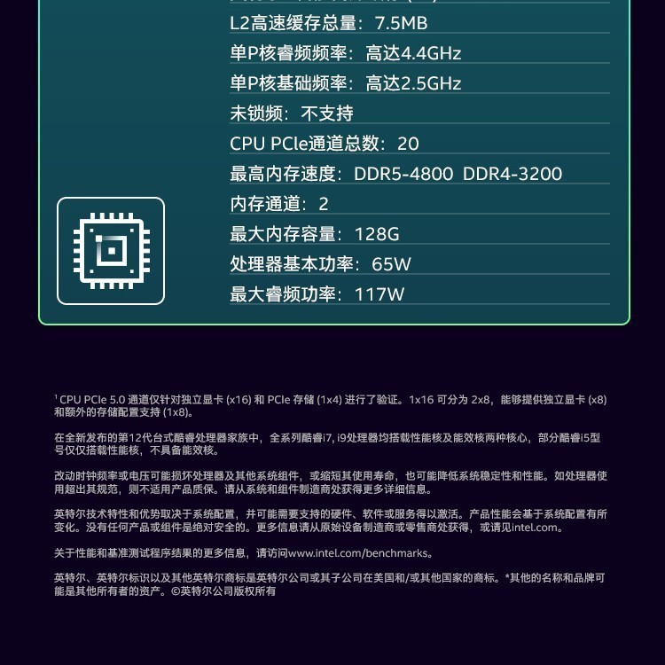 适用于官方正品INTEL英特尔 i5 12400F 原盒