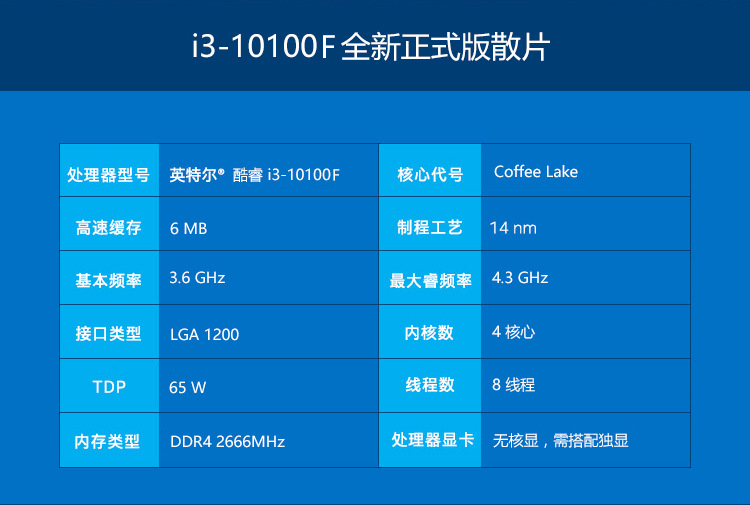 适用Intel/英特尔i3 10100F散片cpu十代处理器支持H410/B460主板