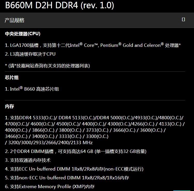 适用技嘉B660M D2H DDR4台式机电脑主板适用12400F/12490F/13600K