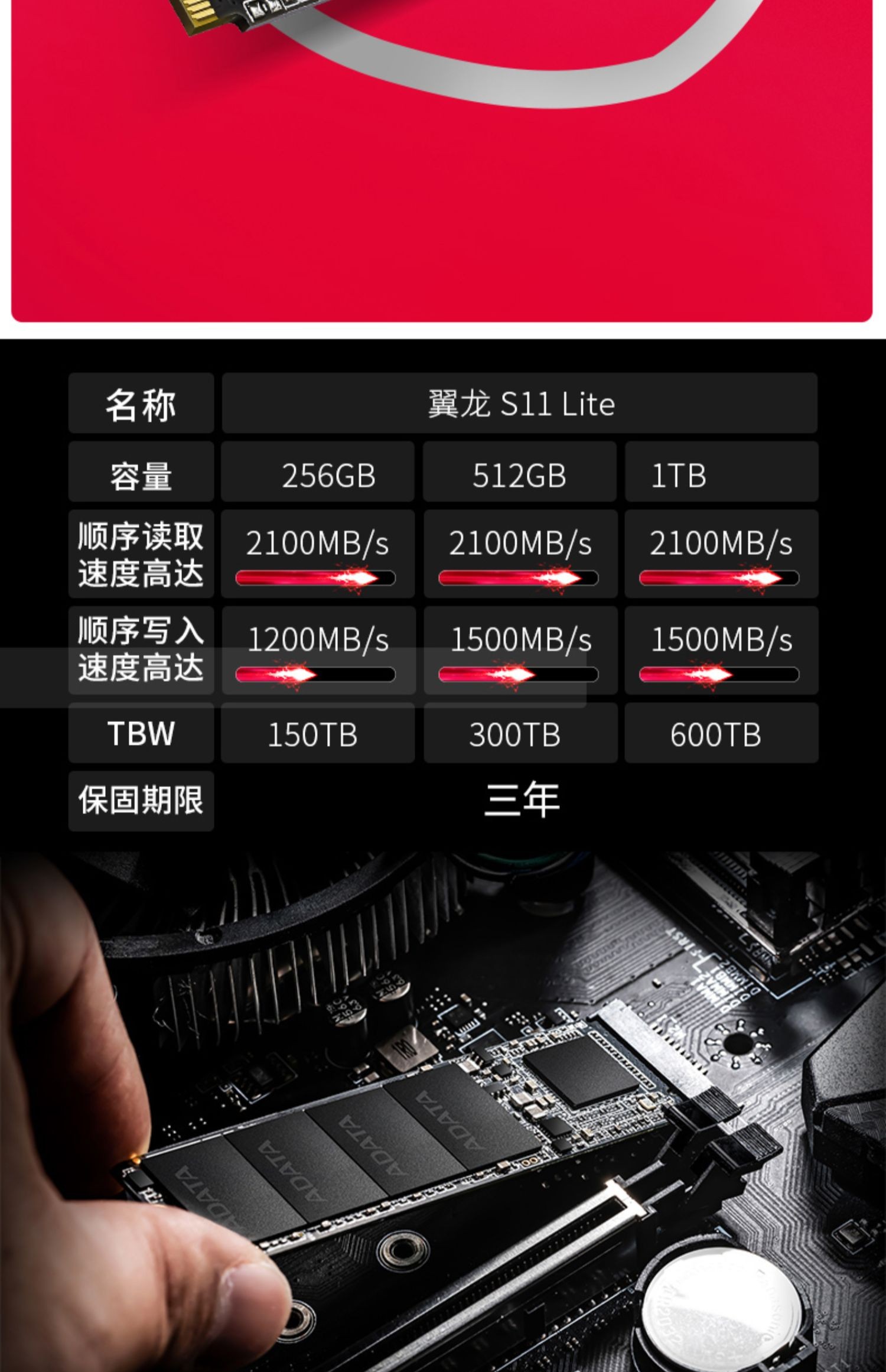 适用ADATA/威刚翼龙S20 256G/512G/1TB SSD固态硬盘PCIe3.0适用