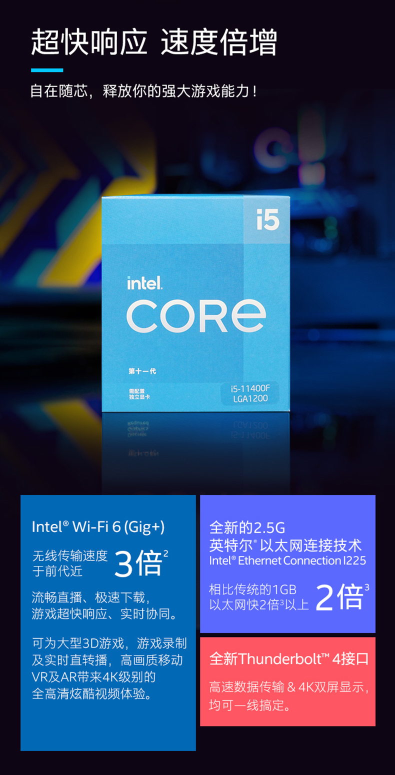适用intel/英特尔11代酷睿i5-11400F盒装处理器6核12线程电脑CPU