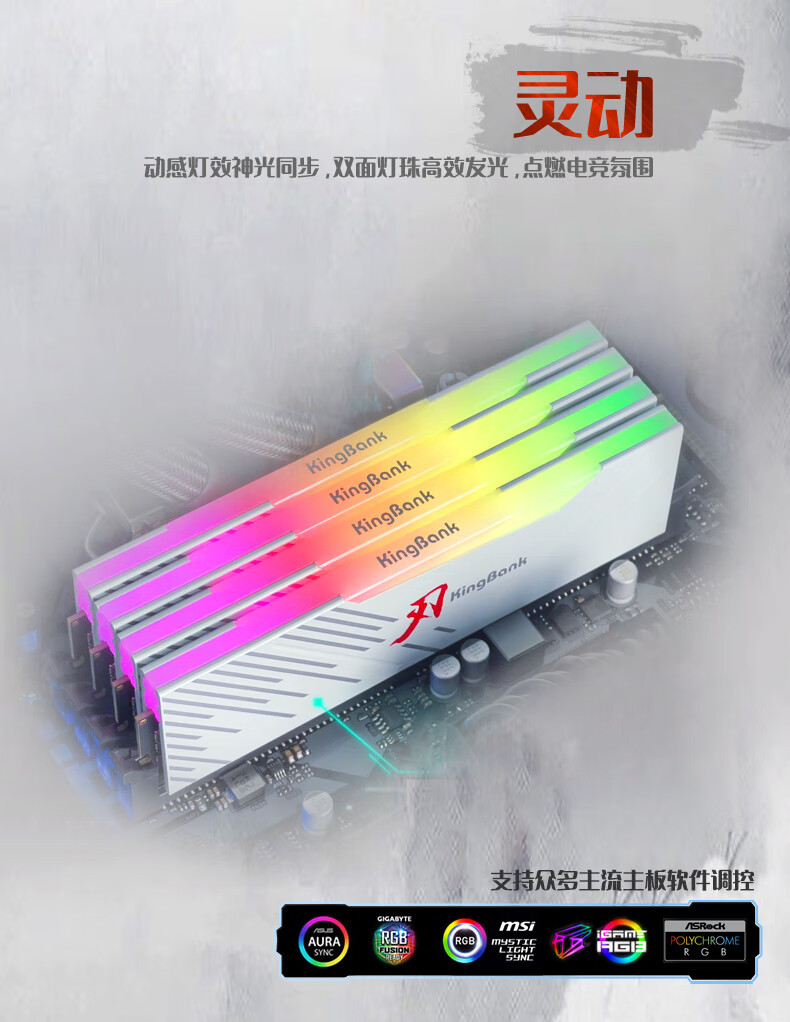 适用金百达16GB(8G×2)套装 DDR4 3600 台式机内存条 RGB灯条